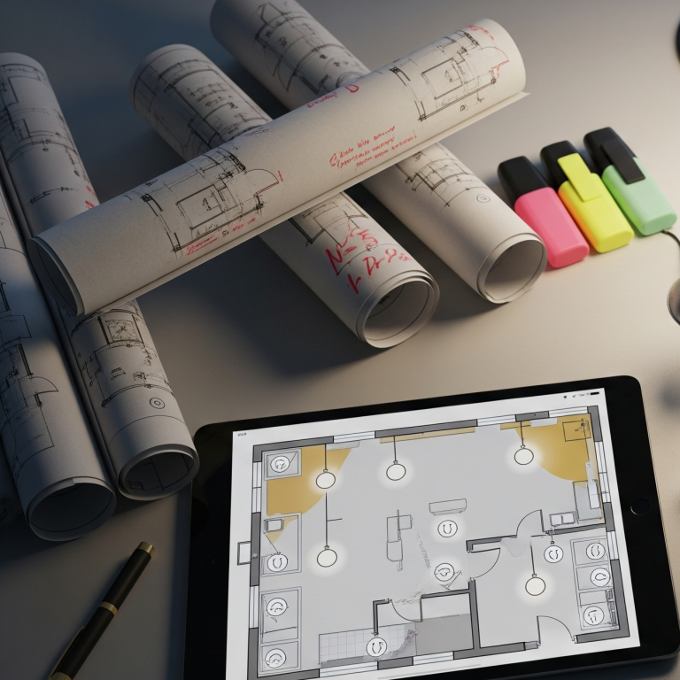 - Professionele montage: samen met een ervaren elektricien zorgen we dat alle lichtpunten correct worden geplaatst volgens de technische tekening.